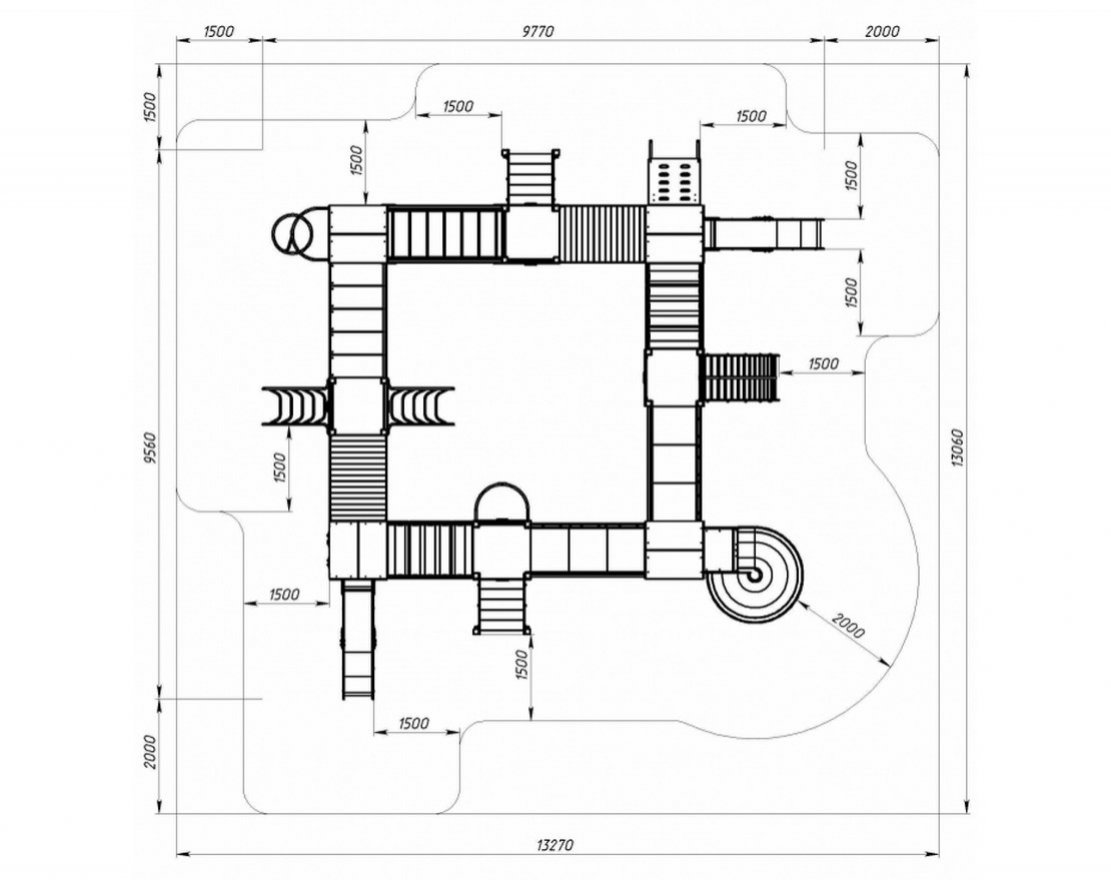 - Зона безопасности, мм: 13060х13270