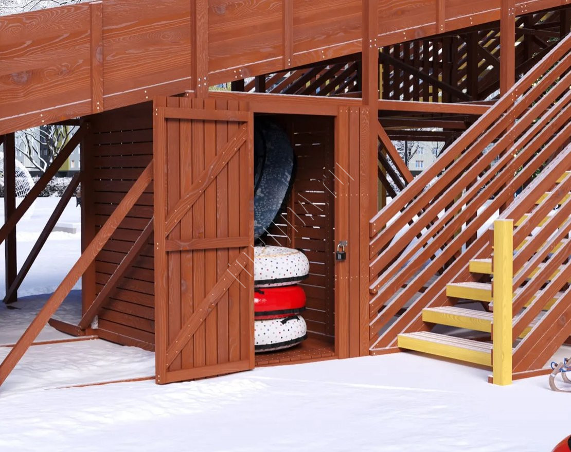 Место для хранения тюбингов, санок, ледянок, инвентаря для зимних горок: