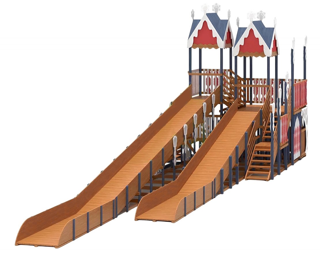 Эта горка — идеальное воплощение зимней сказки, которое станет украшением парка или вашего участка в морозное время года. Удивительный дизайн с множеством декоративных элементов создадут атмосферу настоящего зимнего волшебства.