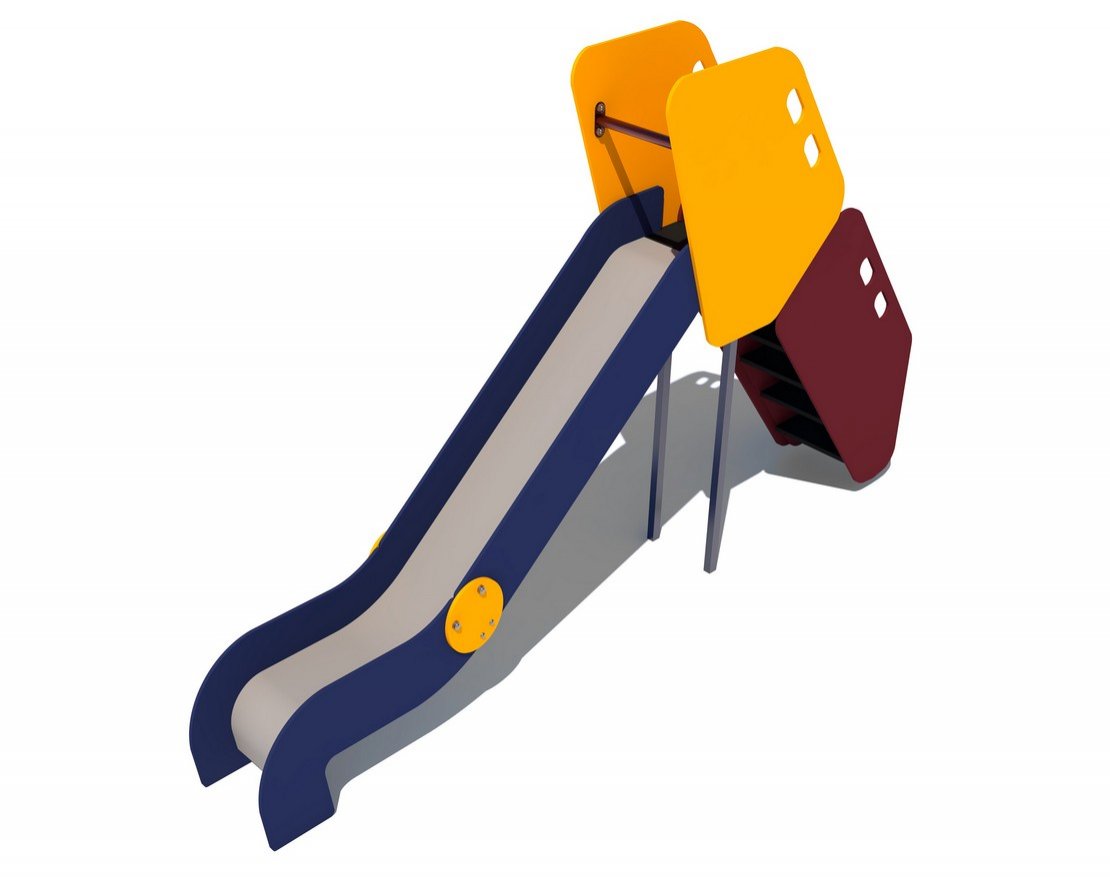Скат горки изготовлен из единого листа нержавеющей стали толщиной 1,5 мм и утоплен в паз фанерного борта. Наличие бортов горки высотой 100 мм обязательно в целях исключения травмирования детей. Горка должна иметь стартовую площадку с перекладиной сечением Ø 27 мм, заставляющую ребенка присесть, полосу разгона и участок торможения. Ступеньки лестницы горки должны быть выполнены из ламинированной нескользящей влагостойкой ламинированной фанеры толщиной 18 мм.