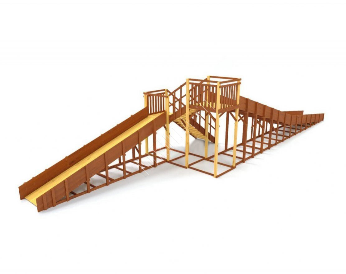 Просторный комплекс с двумя длинными скатами и удобными лестницами. Модель рассчитана на большую компанию детей, которые смогут кататься одновременно, не мешая друг другу.