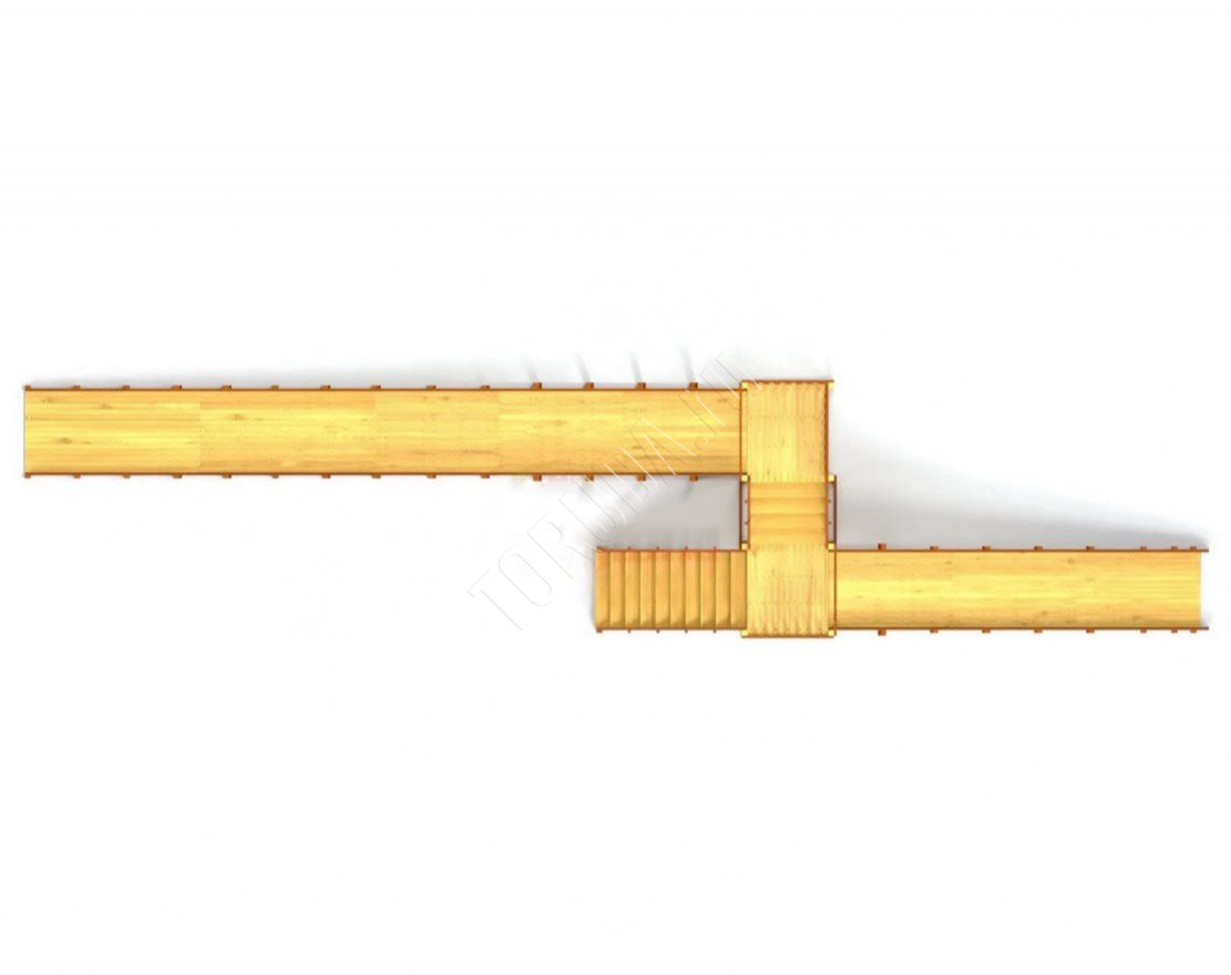 Каркас выполнен из прочного клеёного бруса, устойчивого к морозу и влаге. Все поверхности тщательно отшлифованы, углы скруглены, а крепежи закрыты заглушками.