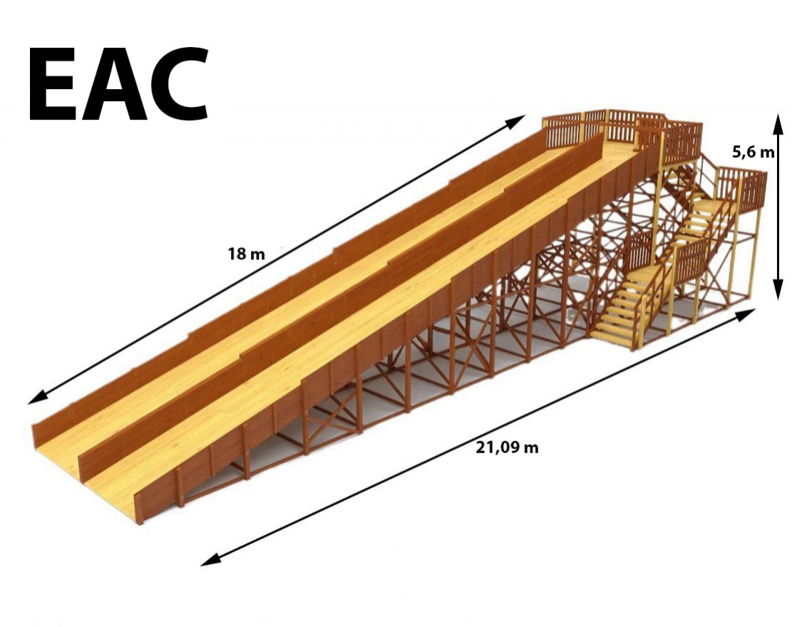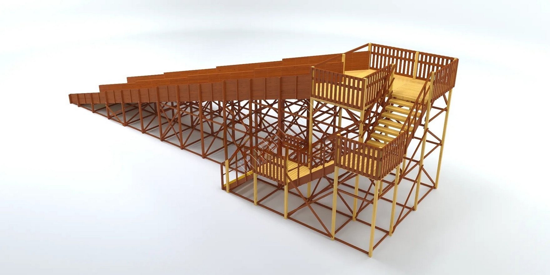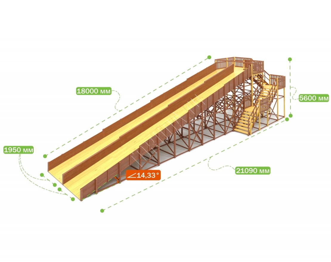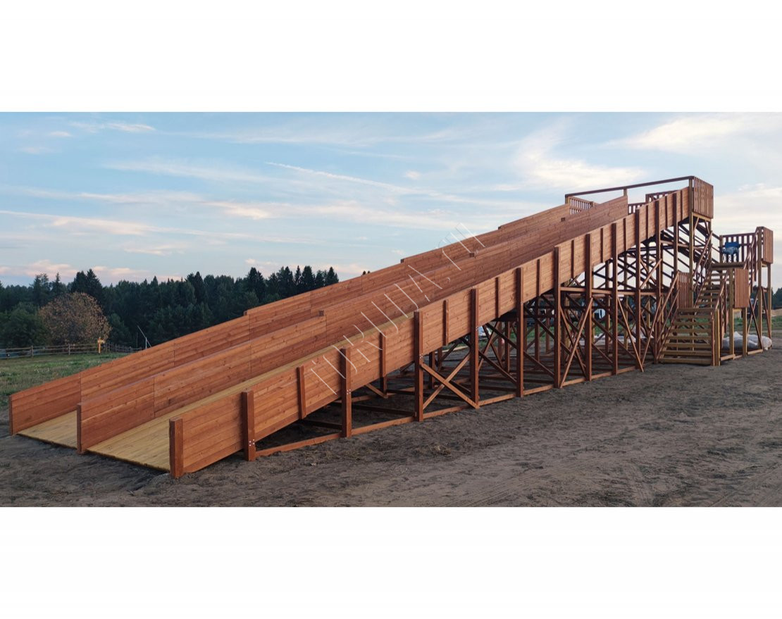 Зимняя горка сделана из качественного клееного бруса – это экологичный, долговечный и прочный материал с красивой древесной фактурой. Конструкция получается устойчивой и удобной, а для большей прочности поверхность покрывается специальным лакокрасочным составом, который повышает стойкость к внешним воздействиям. Покрытие имеет разрешающий сертификат для использования на детских площадках.