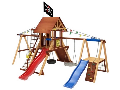 Площадка Галиот 7 обладает довольно широким функционалом (который по желанию можно легко расширить). А на качелях могут кататься даже родители! Детская площадка предназначена для дачи, коттеджа.