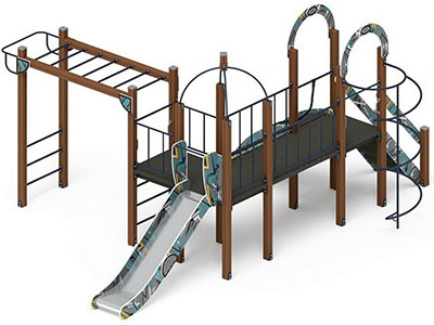 • Особенности комплектации: канат, турник, рукоход, горка, скалодром, лестница