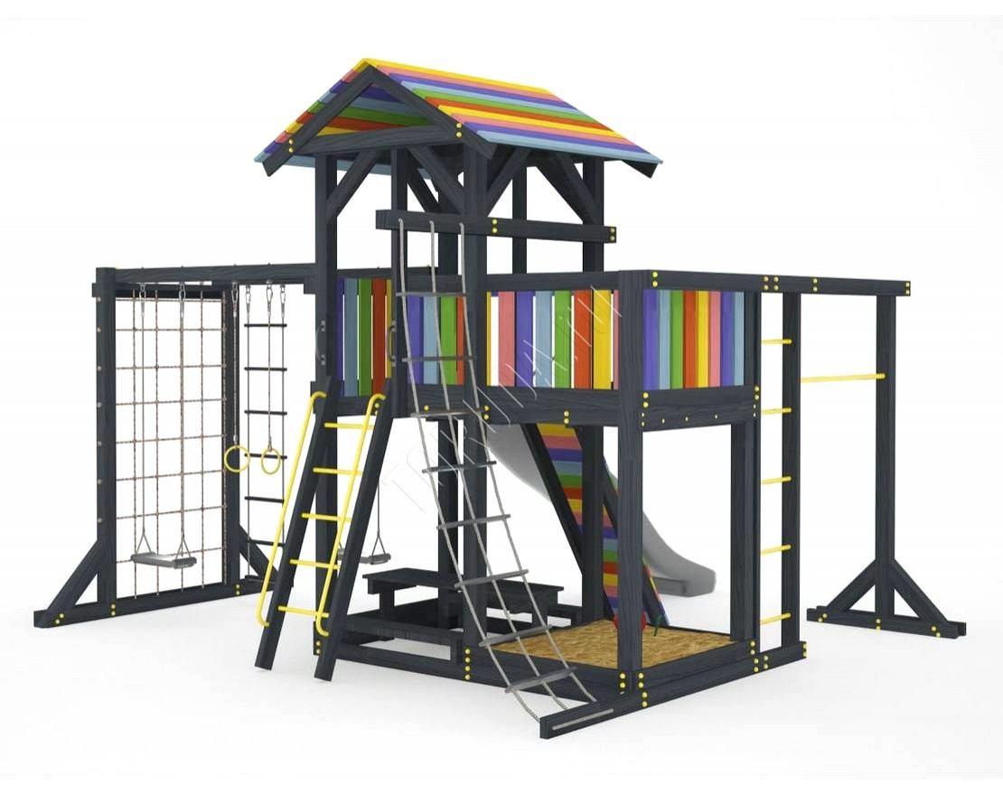 Детская площадка обладает довольно широким функционалом, предназначена для дачи, коттеджа.