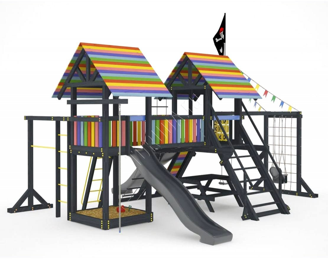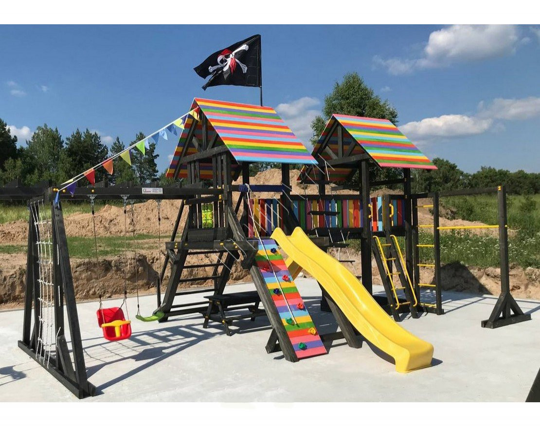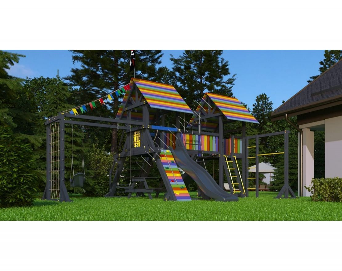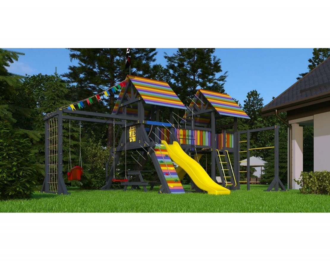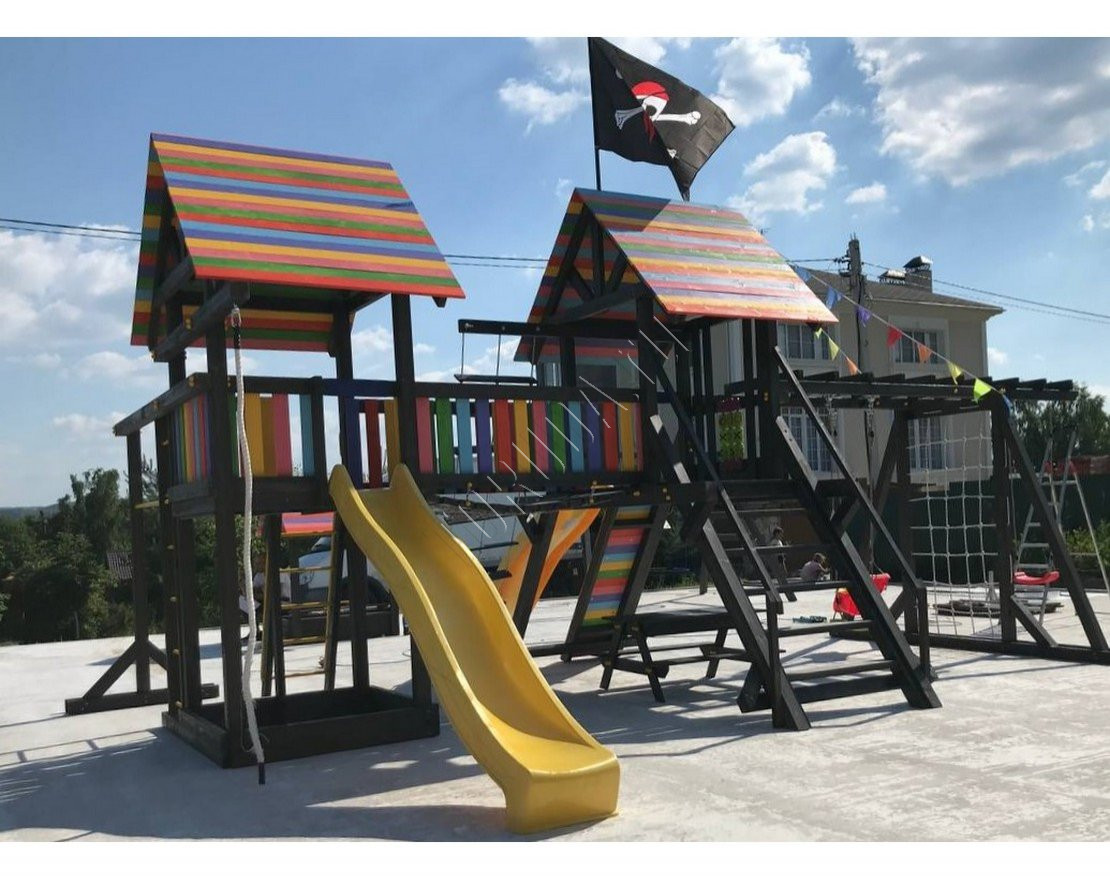 Детская площадка обладает довольно широким функционалом, предназначена для дачи, коттеджа.