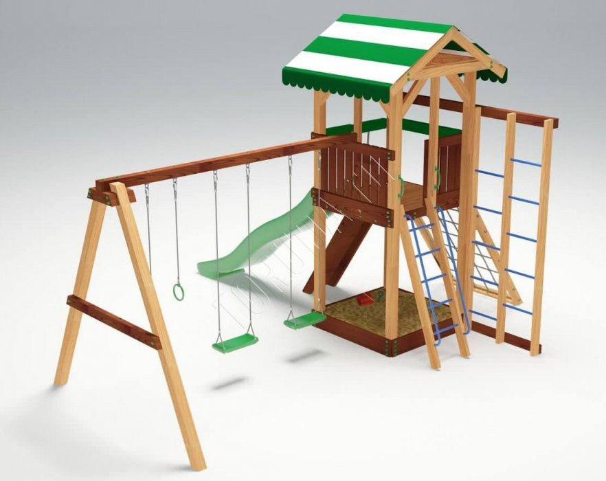 Площадка Парус 4 обладает довольно широким функционалом (который по желанию можно легко расширить). Детская площадка предназначена для дачи, коттеджа.