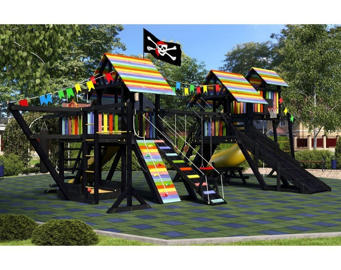 Детская площадка обладает довольно широким функционалом, предназначена для дачи, коттеджа.