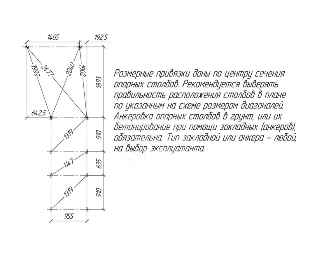 Для установки данной площадки рекомендуется закрепить её анкерами (4 шт). Анкера в комплект не входят, приобретаются дополнительно.