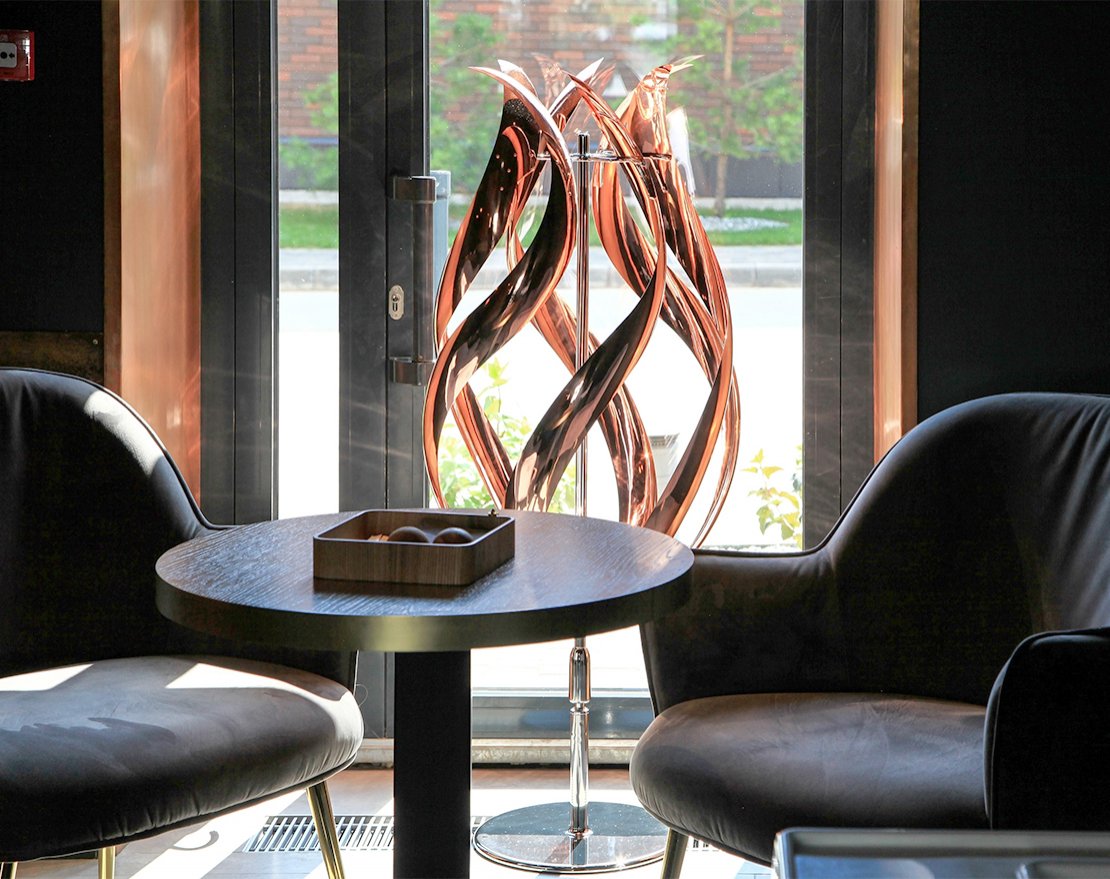 Бутон — это изысканная ветряная скульптура для помещения, которая создаёт атмосферу лёгкости и воздушности. Изготовленная из лёгких и прочных материалов, она напоминает изящный цветок, раскрывающийся в пространстве комнаты. Плавные изгибы и гармоничные формы скульптуры придают ей неповторимое очарование. Бутон становится не просто элементом декора, но и частью интерьера, гармонично сочетаясь с общим стилем помещения. Благодаря своей конструкции, скульптура реагирует на малейшие движения воздуха, создавая динамичные и завораживающие визуальные эффекты. Она превращает обычное пространство в арену для удивительного танца форм, меняя своё визуальное восприятие с каждым дуновением ветра. Бутон не только украшает интерьер, но и вносит в него элемент живой природы, напоминая о красоте и непредсказуемости мира вокруг нас. Эта скульптура станет настоящим украшением вашего дома, создавая уютную и гармоничную атмосферу.